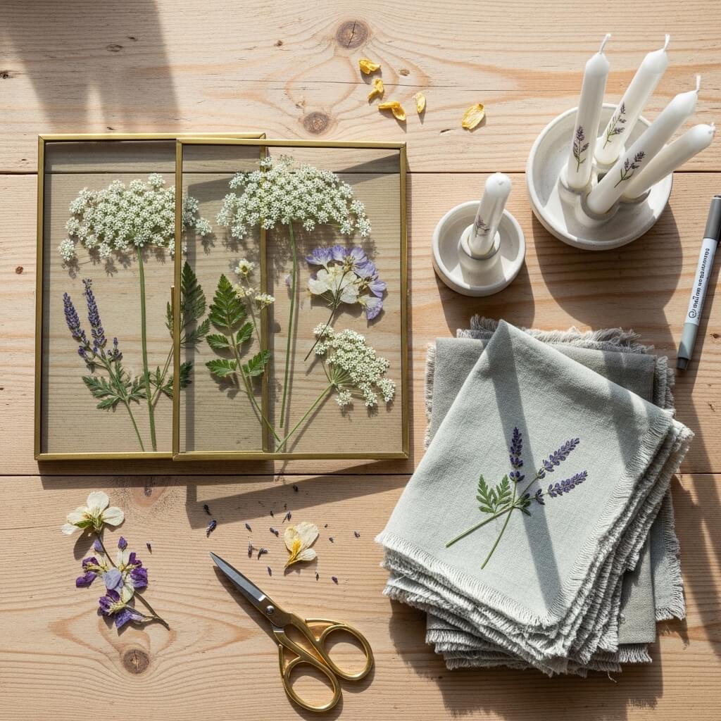 3. Hand-Painted Taper Candles: Use non-toxic acrylic pens to draw tiny lavender sprigs or dots onto plain white taper candles. It adds a bespoke, artisanal touch to your dining table.