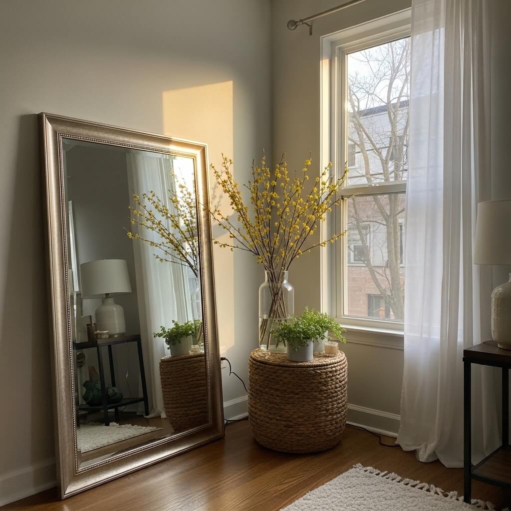 • Golden Hour: As the days get longer, notice where the sun hits your walls at 5:00 PM. Place a mirror opposite that spot to bounce the golden light deeper into the room.