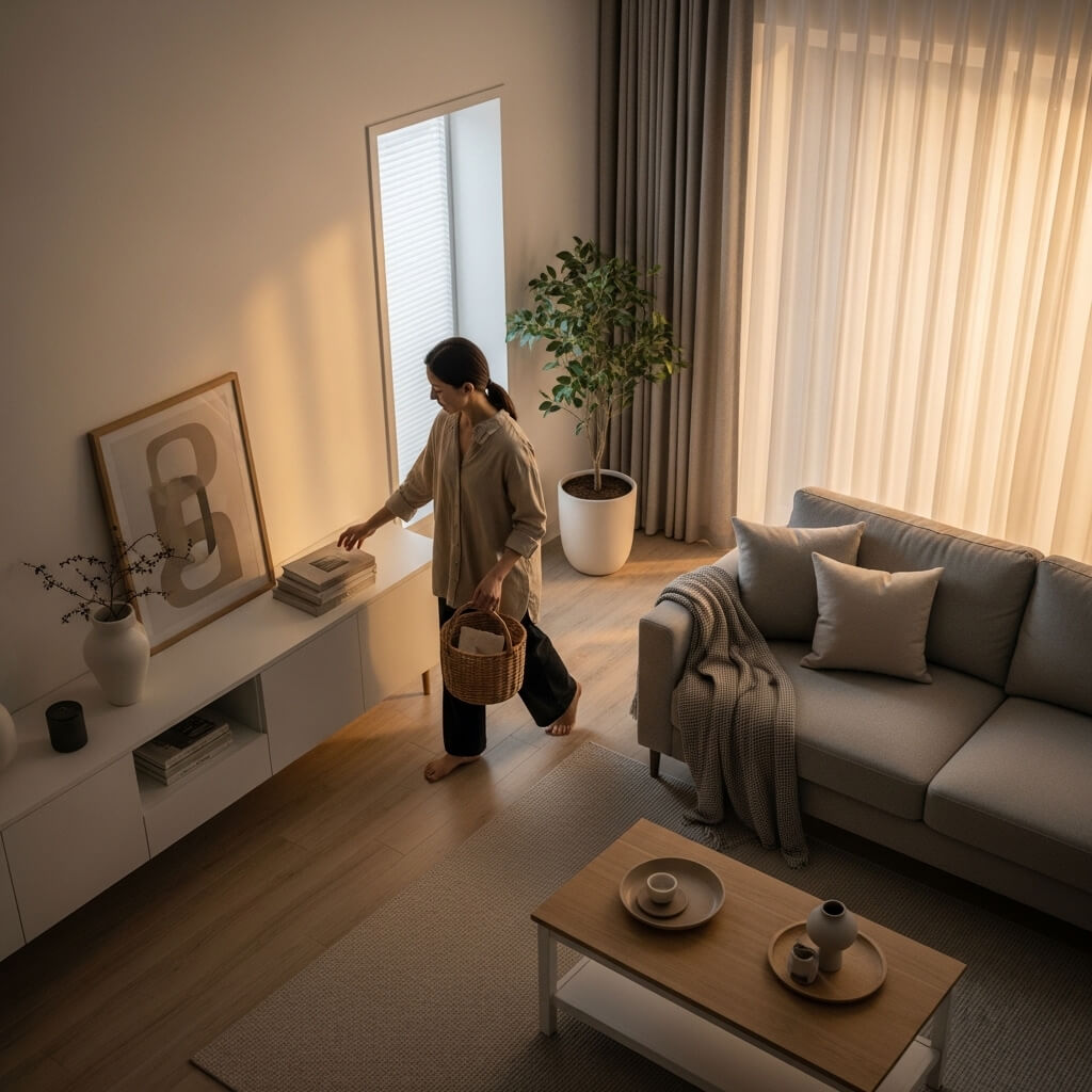 Waking up to an ordered environment reinforces minimalist habits and starts your day calmly.