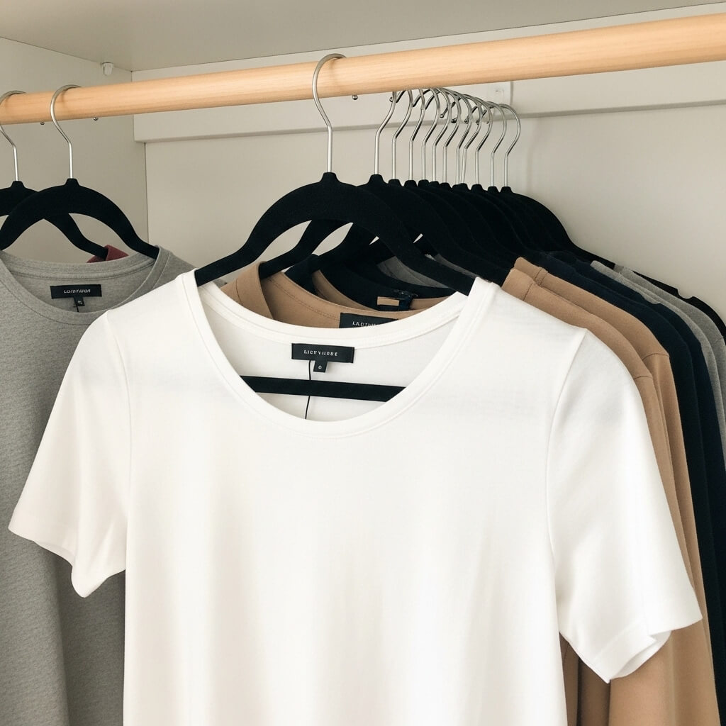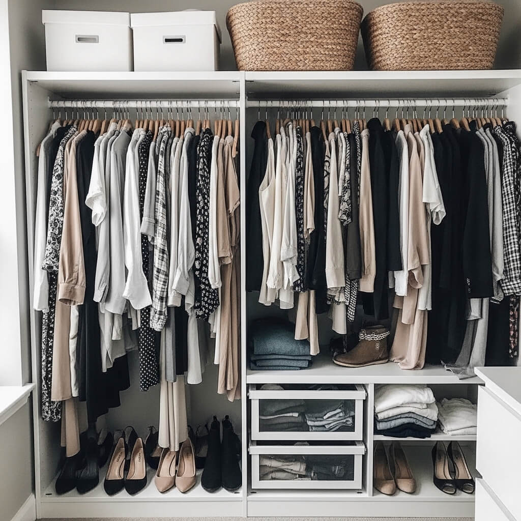 This creates space in your closet, looks organized, and cuts down on daily decision-making.