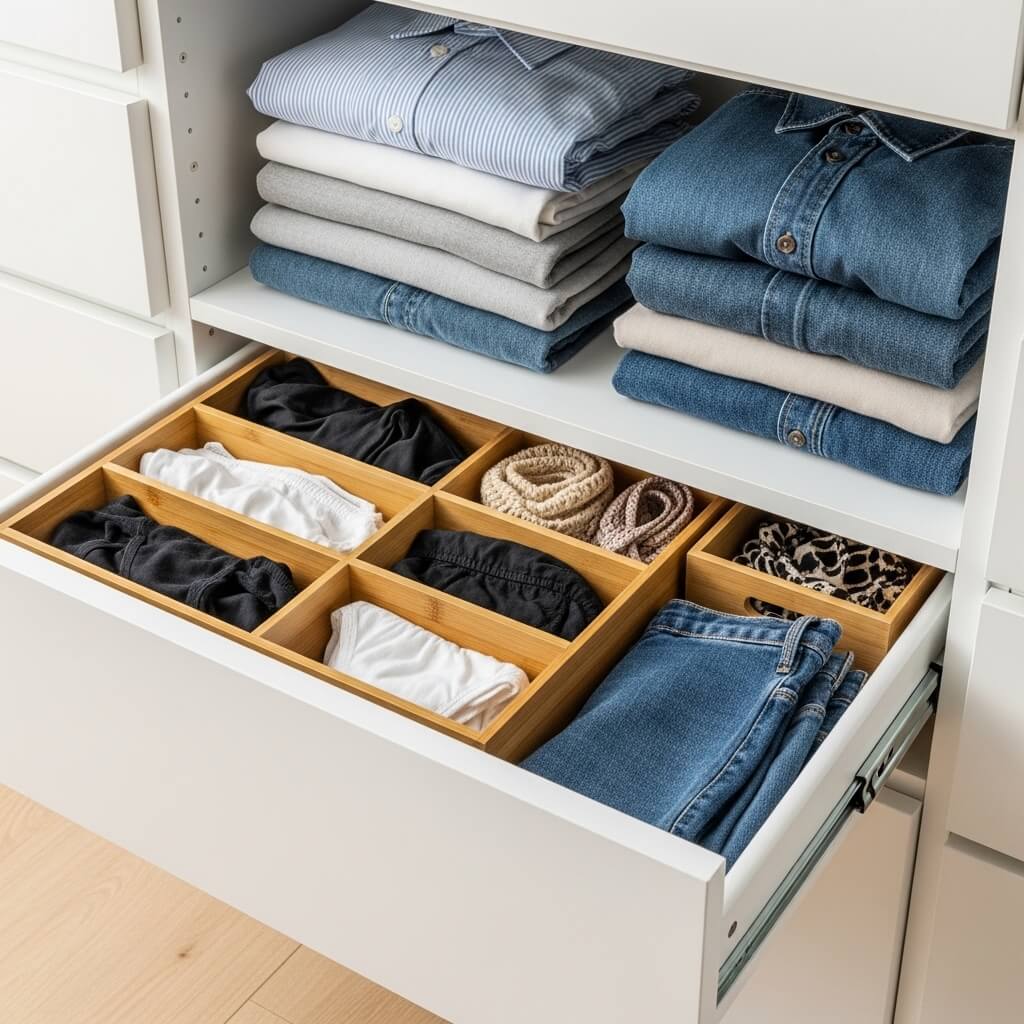 Use bamboo dividers or small bins to keep these spaces tidy.
