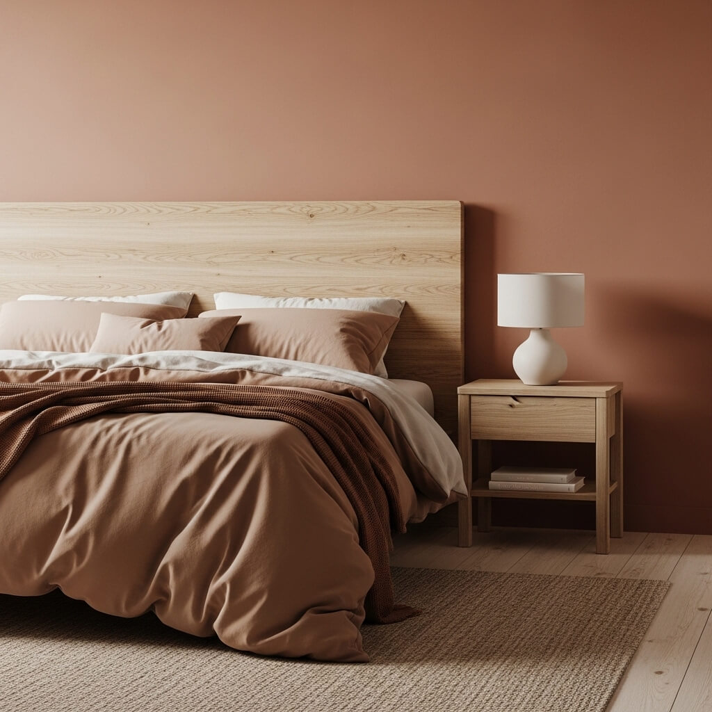 - The Palette: Match bedding and wall colors to the wood’s undertones. Warm oatmeals and muted terracotta work well with light oak.