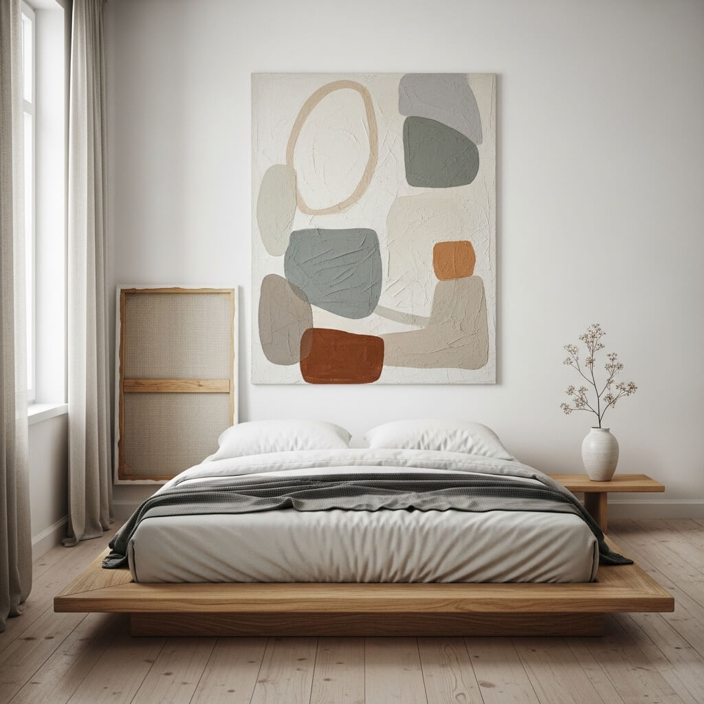 - The Execution: Lean one large piece of textured abstract art off-center against the wall or platform. This creates visual interest and stops the scroll on Pinterest.