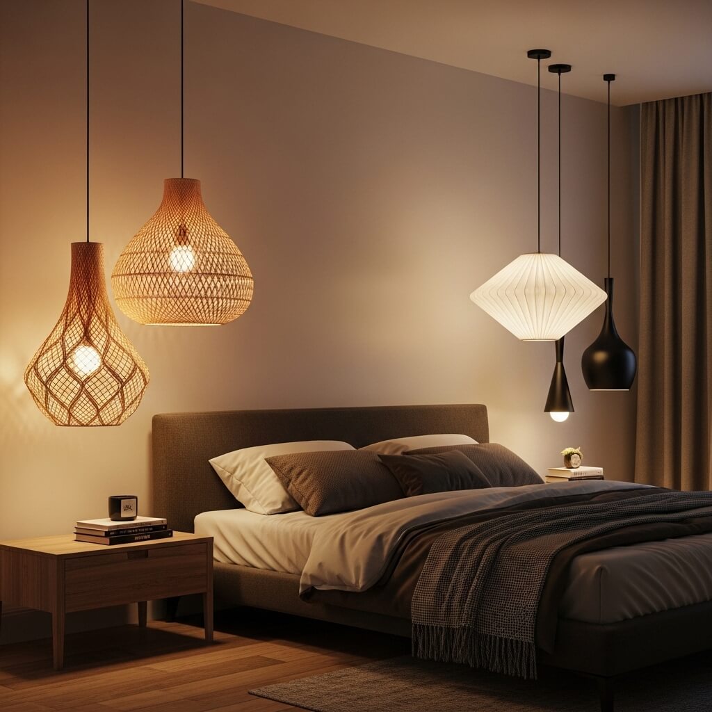 - The Materials: Choose woven rattan, pleated paper, or matte black metal. This frees surface space and adds dramatic lines for a cozy glow.