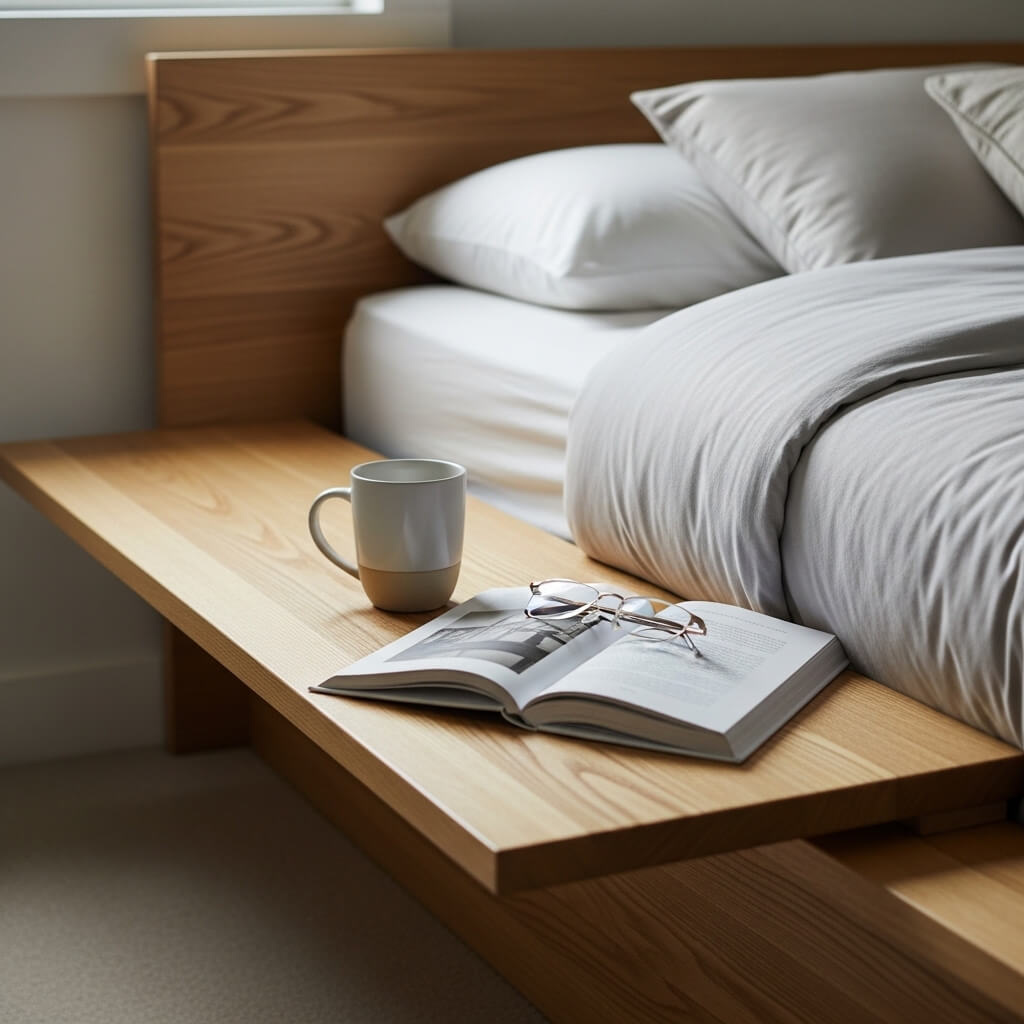- The Function: This eliminates the need for bulky nightstands.