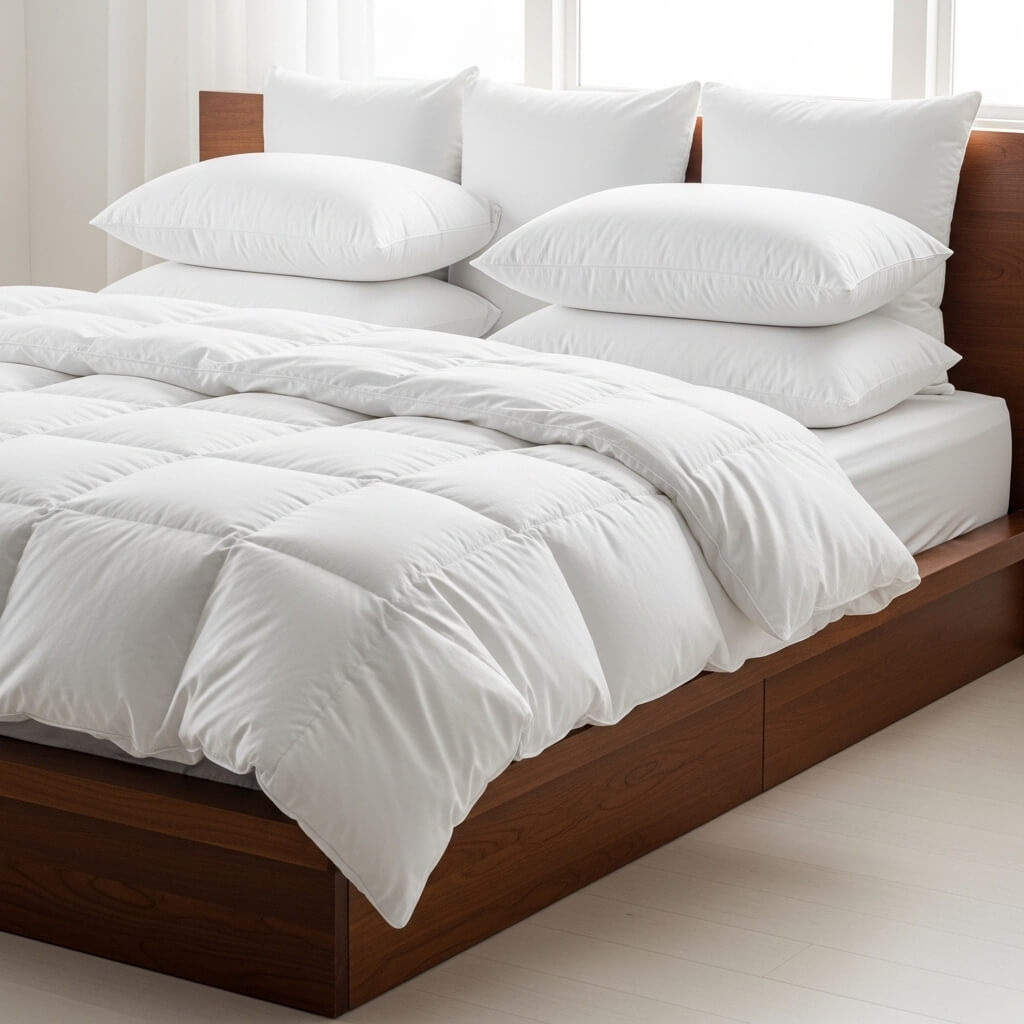 - The Volume: Use a double-stuffed duvet and thick European square pillows for back support.