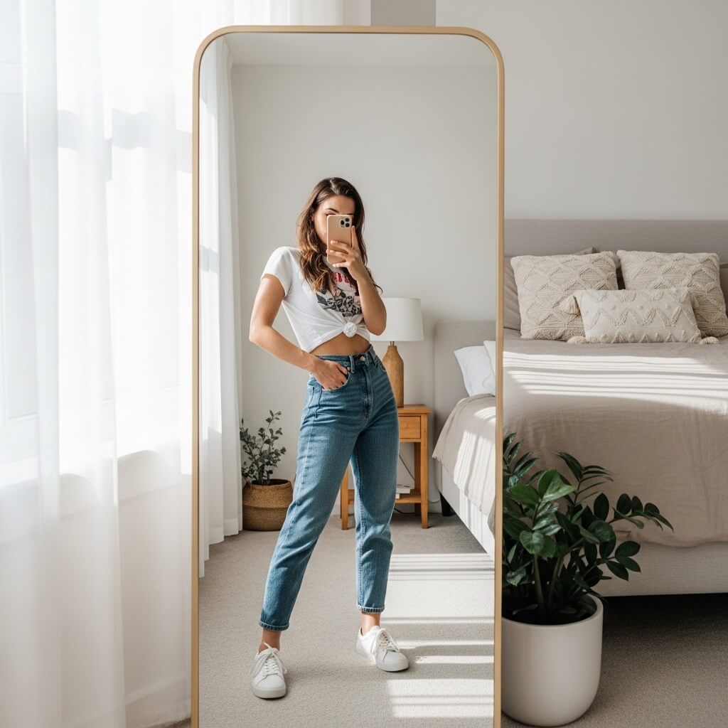 Perfecting your pose secures the best bedroom mirror selfie inspiration.