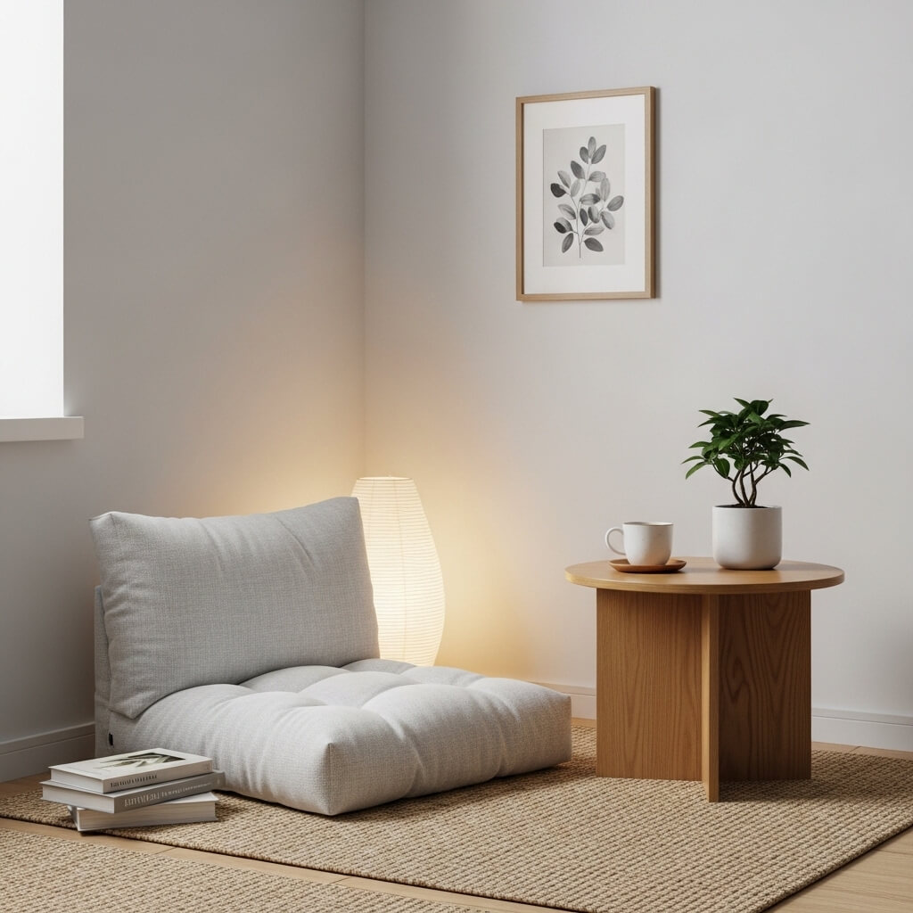 I arrange my Japandi-style furniture to keep my space serene and grounded.