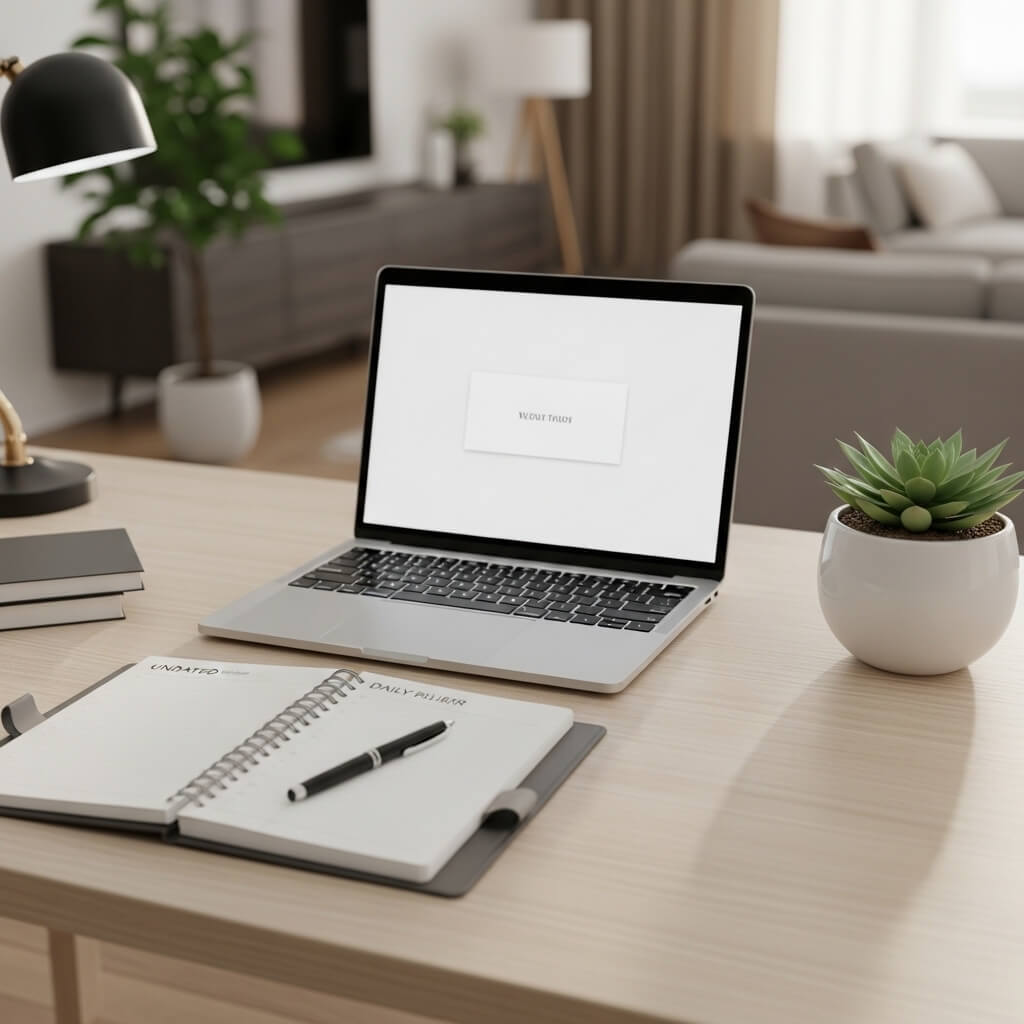 I carefully arrange my Laptop and daily planner to project ultimate productivity.