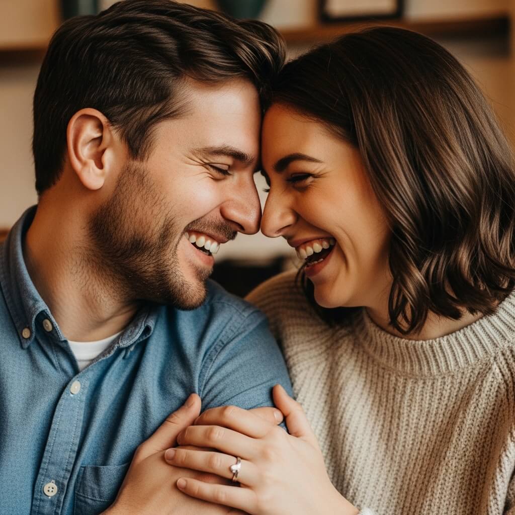 I force my partner to tell a terrible joke to capture genuine laughing Couple photos.