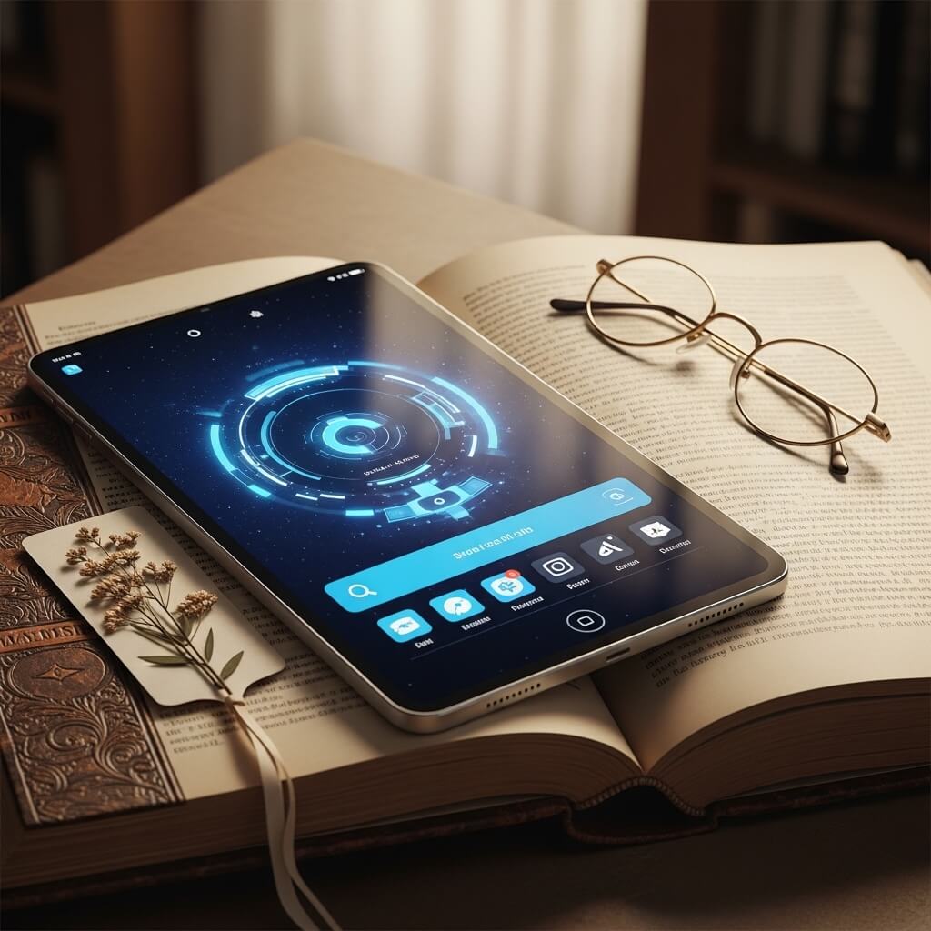 I frequently photograph my sleek tablet resting on a vintage novel.