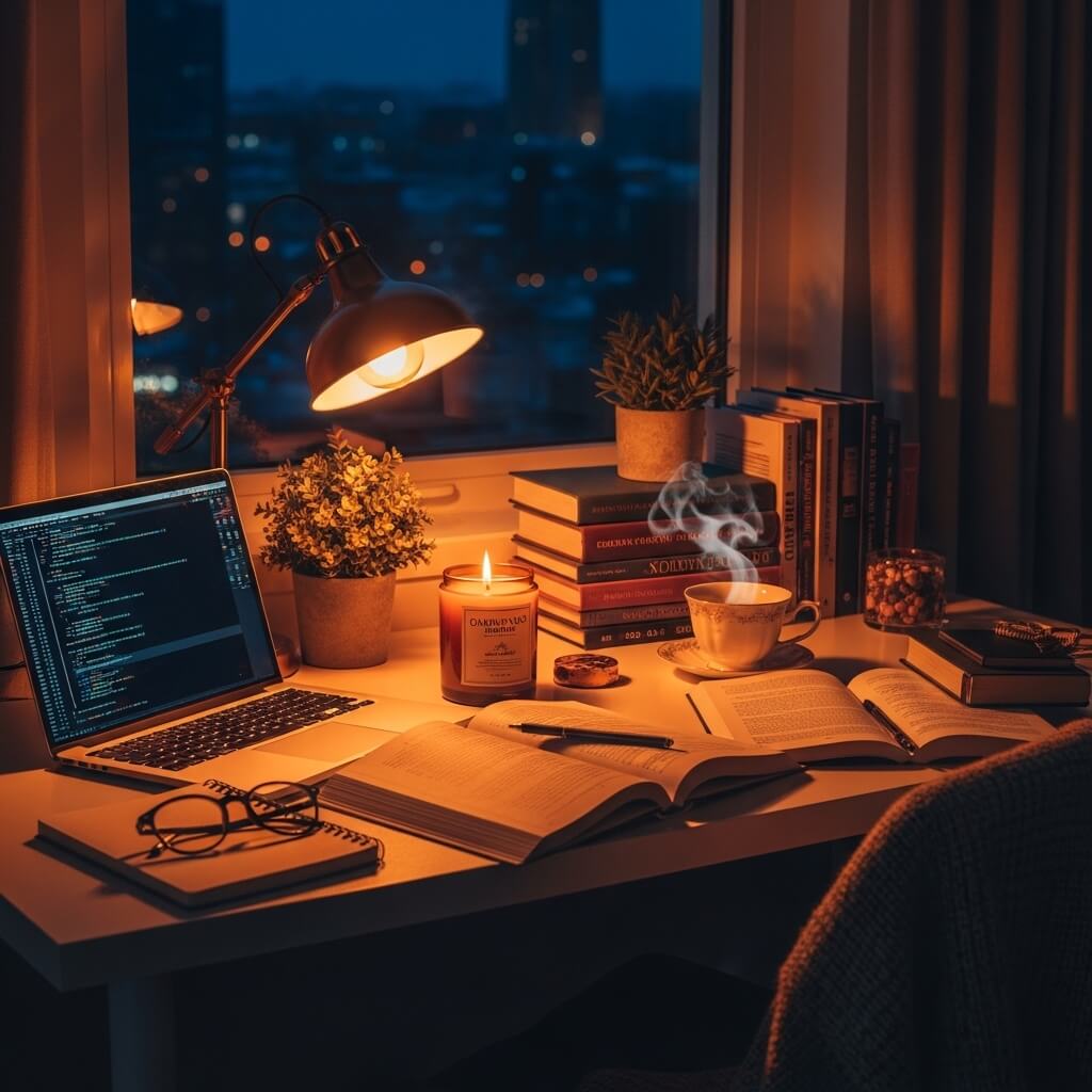 I romanticize my late-night hustle by setting up a beautiful desk aesthetic.