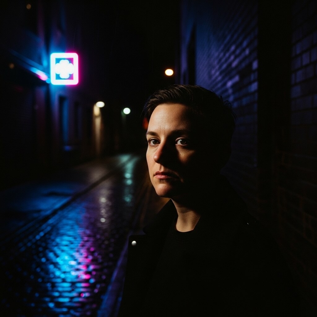 I utilize neon street signs to illuminate my Night dark photography sessions.