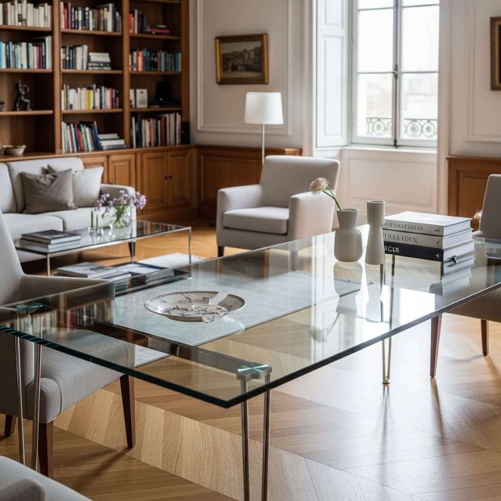 I smashed a fragile plate on a glass table once, so watch out! Transparent furniture feels incredibly light.