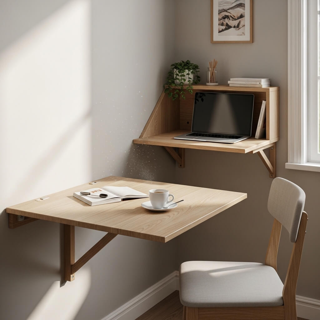 I cleverly utilize dead space by installing a sturdy Wall mount desk.