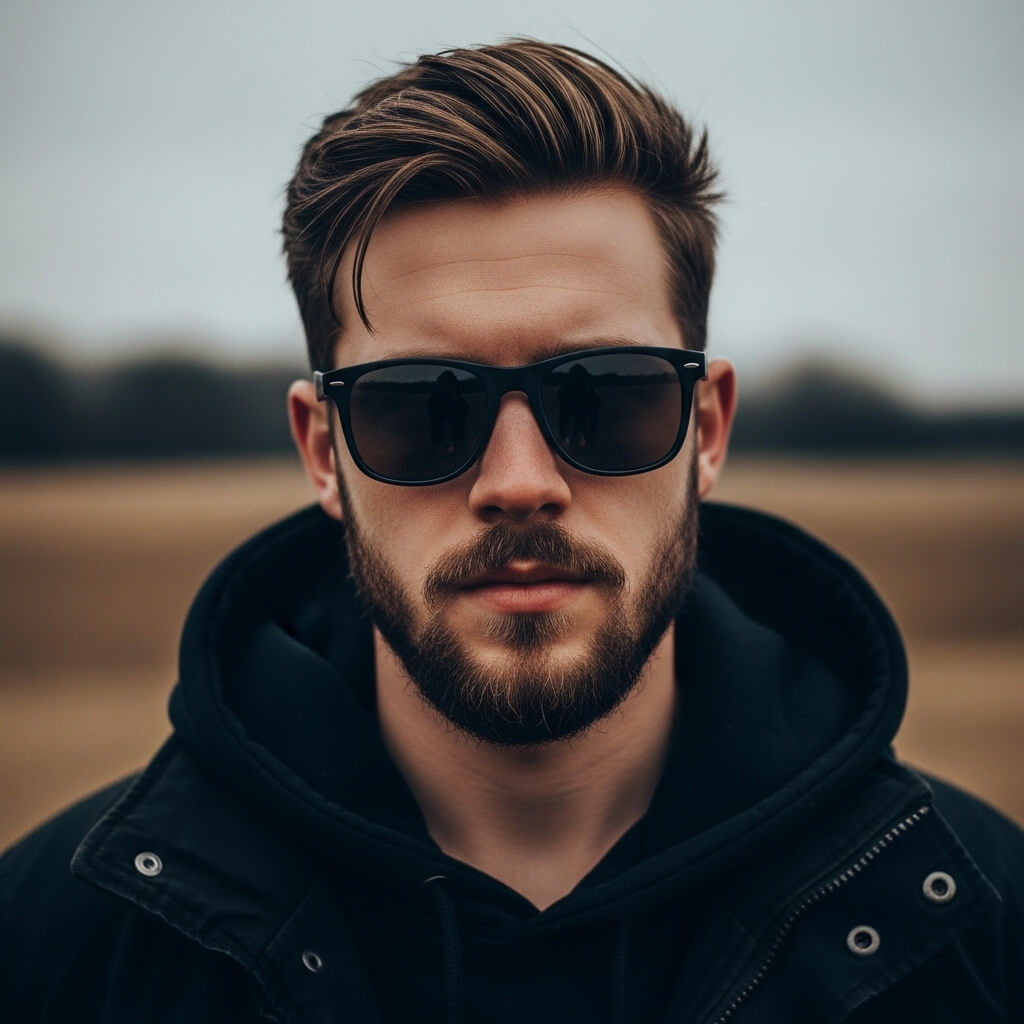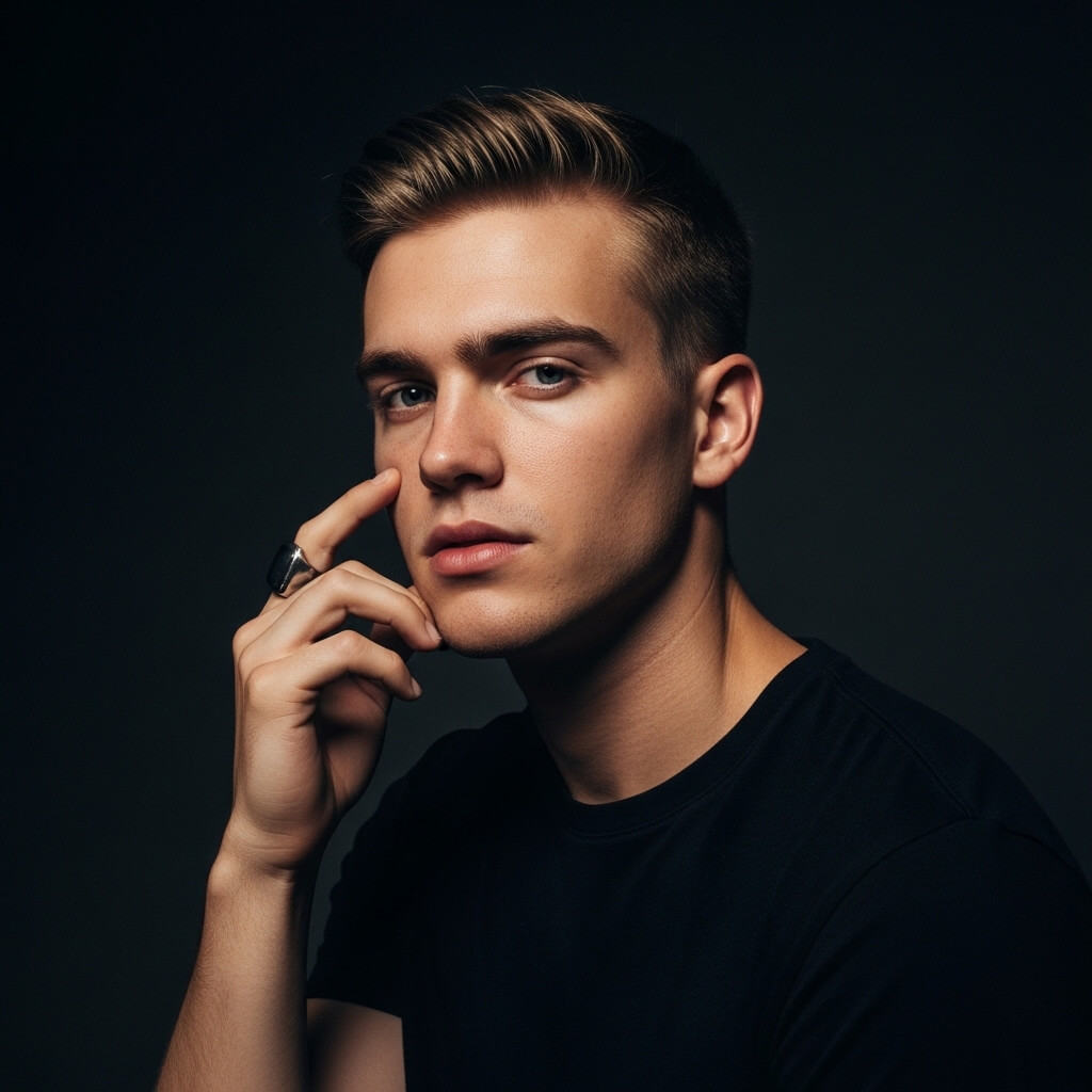 Flat lighting completely destroys masculine facial features, so I purposely use harsh, directional light to carve out strong jawlines.