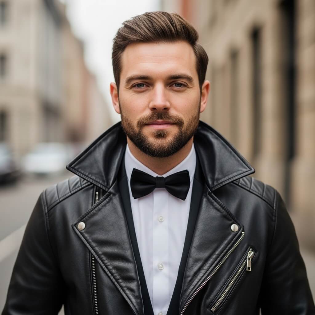 - Layer a classic leather jacket over a simple, plain t-shirt.