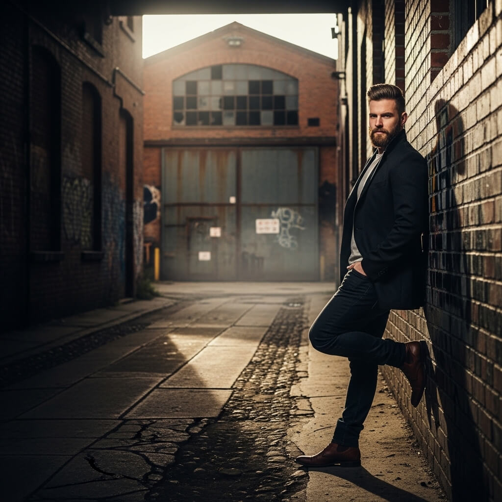 Studio backgrounds completely bore me, so I aggressively hunt for gritty urban alleys to give a Men-focused Photoshoot serious edge.