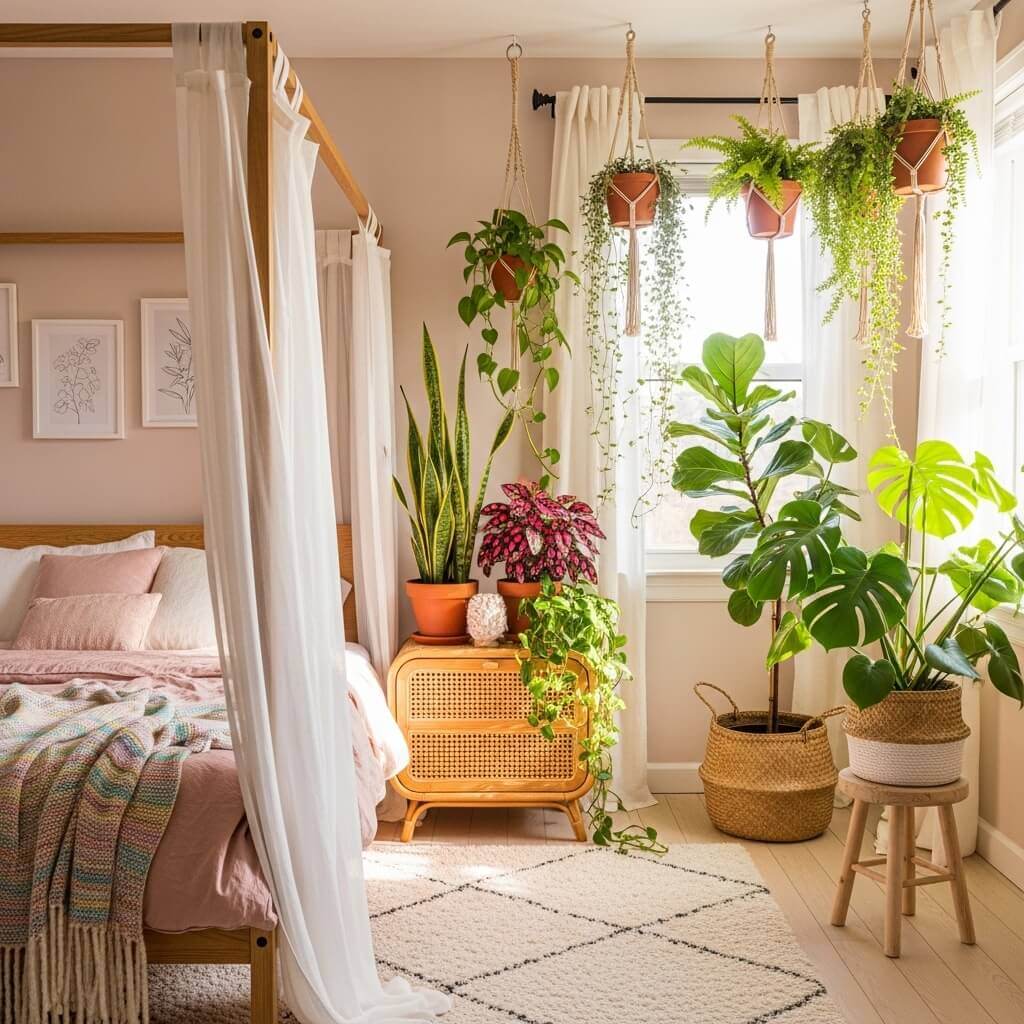 Thriving houseplants inject vibrant, fresh energy into any soft girl era bedroom.