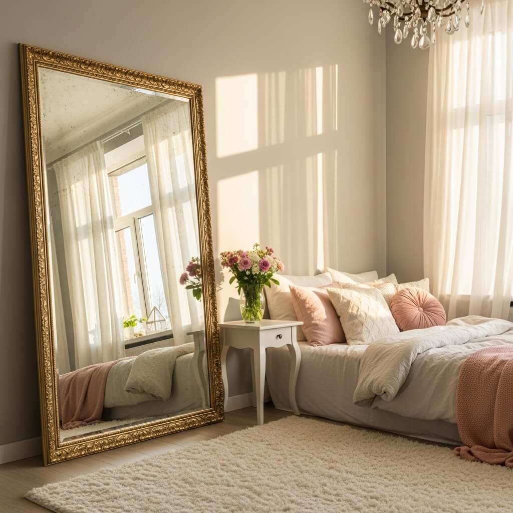 I snagged a gorgeous vintage mirror at a thrift store, and it instantly doubled my room’s natural light.