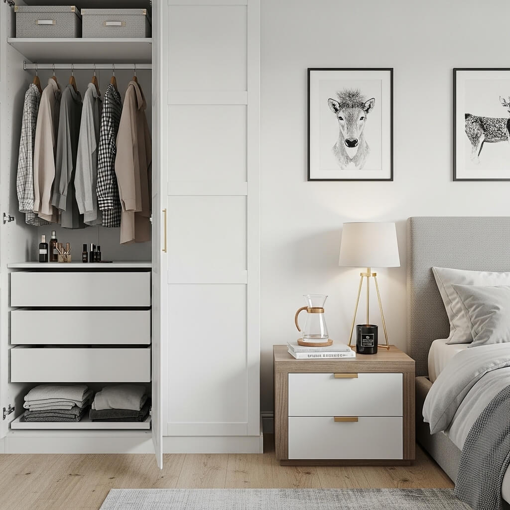 • The Solutions: Invest in storage that blends in. Use built-in white wardrobes that match the walls. Add under-bed storage for off-season clothes.