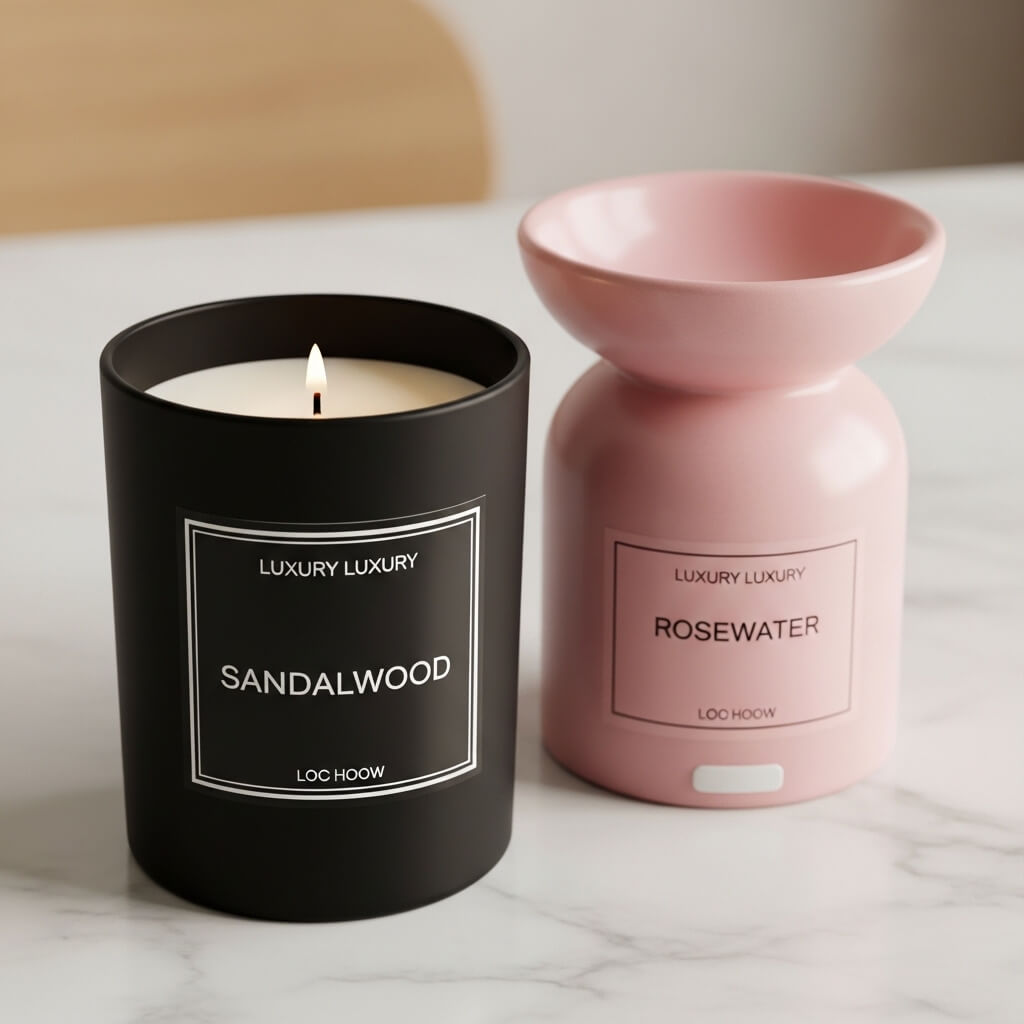• Aesthetic Integration: Display luxury candles. Place a matte black sandalwood candle (Black) next to a pink ceramic diffuser with a rosewater scent (Pink/White). This sensory detail completes the room and enhances the clean aesthetic.