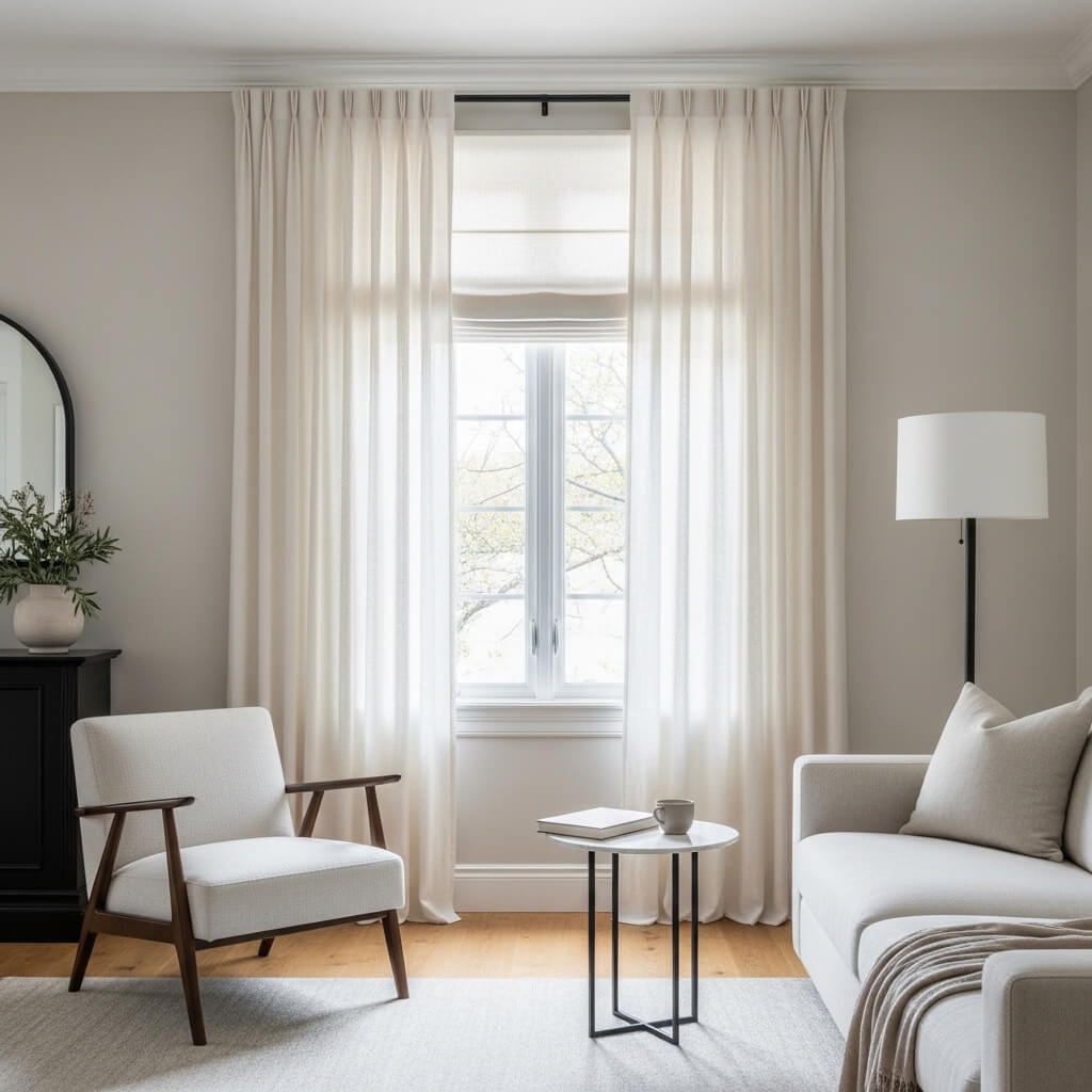 • The Hanging Style: Hang drapes from the ceiling to the floor, ensuring they cover the window fully. Full drapery enhances the room’s luxury and coziness.