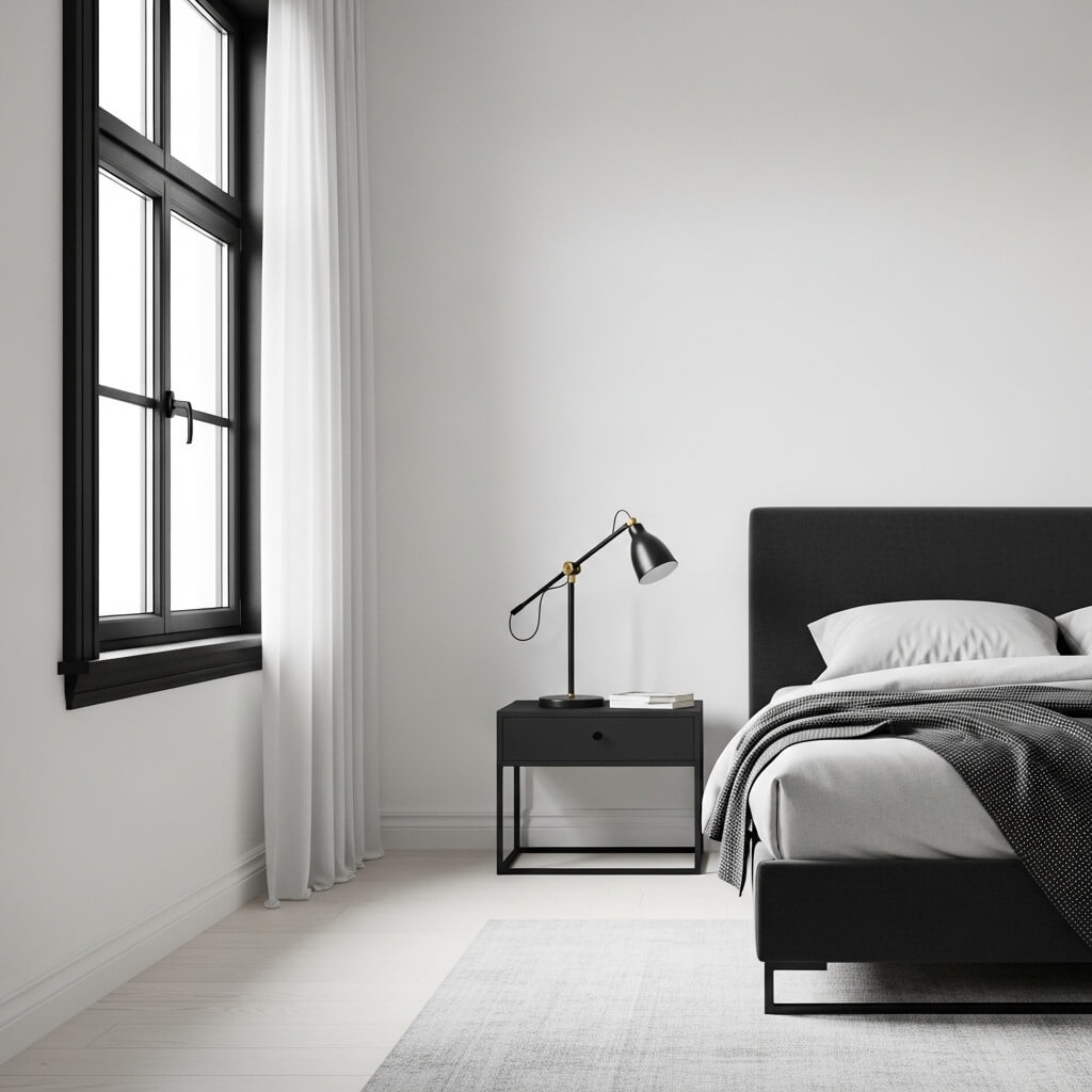 • The Execution: Use black for architectural lines and furniture. Consider a sleek matte black bed frame, black window trim, or a minimalist black lamp.